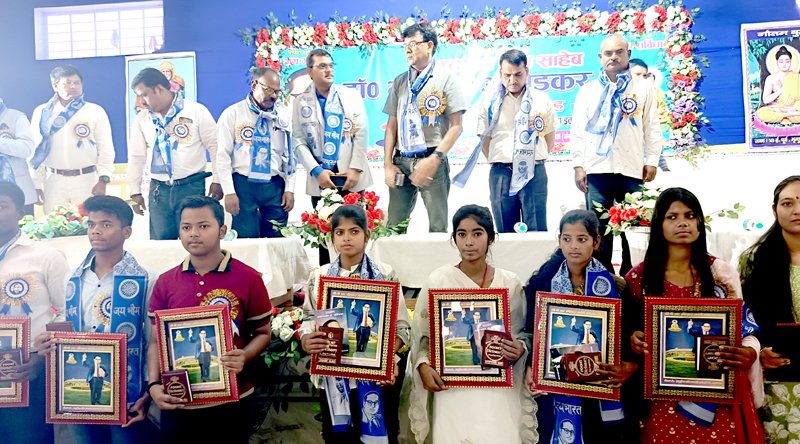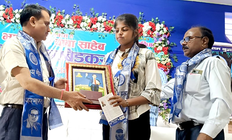 इस मौके पर वर्ष 2026 की मैट्रिक और इंटरमीडिएट परीक्षा में जिले के टॉप टेन में स्थान पाने वाले लगभग तीन दर्जन छात्र-छात्राओं को बाबा साहेब की तस्वीर और संविधान की पुस्तक देकर सम्मानित किया गया।