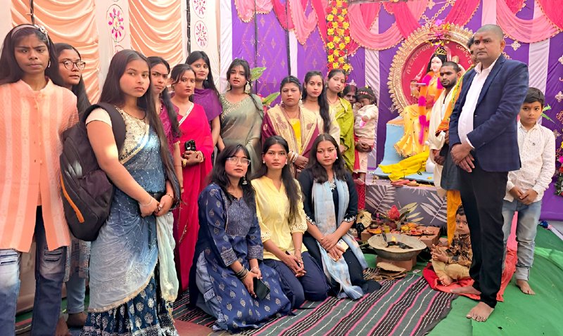 शेखपुरा: बसंत पंचमी के पावन अवसर पर शहर के टीचर कॉलोनी, बंगाली टोला स्थित एटेक्स लाइब्रेरी एंड कंप्यूटर एजुकेशन में