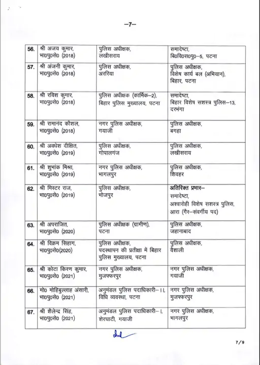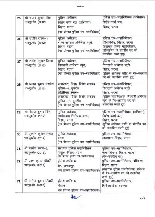Bihar News : UPSC टॉपर को मिली बड़ी जिम्मेदारी, बिहार में एक साथ 22 IAS और 71 IPS ट्रांसफर, कई जिलों के SP बदले!