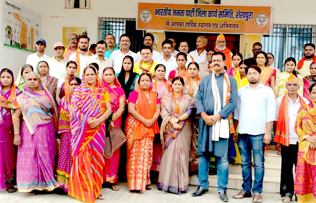 शेखपुरा : भारतीय जनता पार्टी शेखपुरा जिला इकाई की एक महत्वपूर्ण बैठक गुरुवार को पार्टी के जिला कार्यालय में आयोजित की गई। बैठक की अध्यक्षता भाजपा जिलाध्यक्ष रेशमा भारती ने की, जबकि मुख्य अतिथि के रूप में भाजपा जिला प्रभारी प्रकाश भगत उपस्थित रहे। बैठक में संगठन के कई अहम मुद्दों पर चर्चा की गई, जिसमें बूथ सशक्तिकरण अभियान, मतदाता पुनरीक्षण अभियान, तिरंगा यात्रा, तथा अन्य संगठनात्मक गतिविधियाँ प्रमुख रहीं।