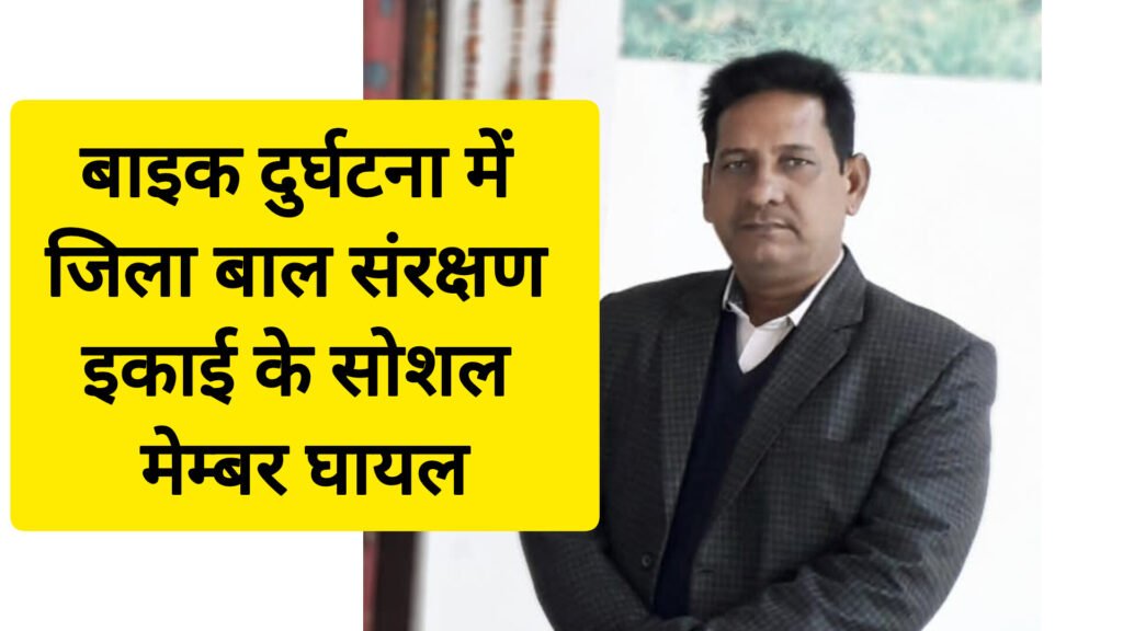 रविवार देर शाम एक सड़क हादसे में जिला बाल संरक्षण इकाई के सोशल मेंबर श्रीनिवास गंभीर रूप से घायल हो गए। उन्हें प्राथमिक इलाज के लिए सदर अस्पताल में भर्ती कराया गया, जहां उनका उपचार जारी है।