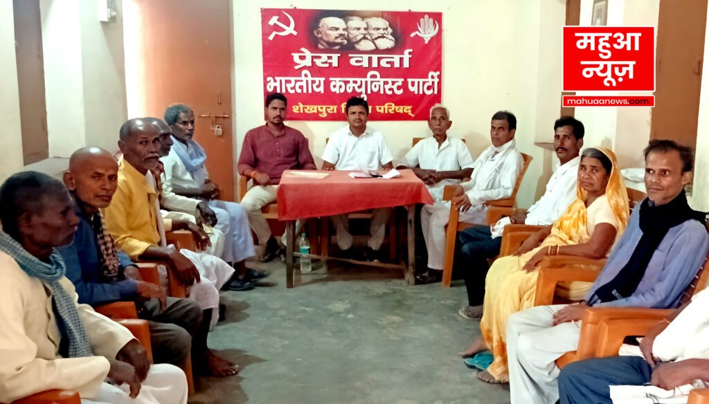 भारतीय कम्युनिस्ट पार्टी की अंचल कमिटी की बैठक स्टेशन रोड स्थित पार्टी कार्यालय में हुई। बैठक की अध्यक्षता नंदलाल राम ने की। इसमें सर्वसम्मति से फैसला लिया गया कि 12 अप्रैल 2025 को एनडीए सरकार की नीतियों के खिलाफ शेखपुरा की सड़कों पर आंदोलन किया जाएगा। आंदोलन में किसान, मजदूर और अल्पसंख्यक बड़ी संख्या में शामिल होंगे।