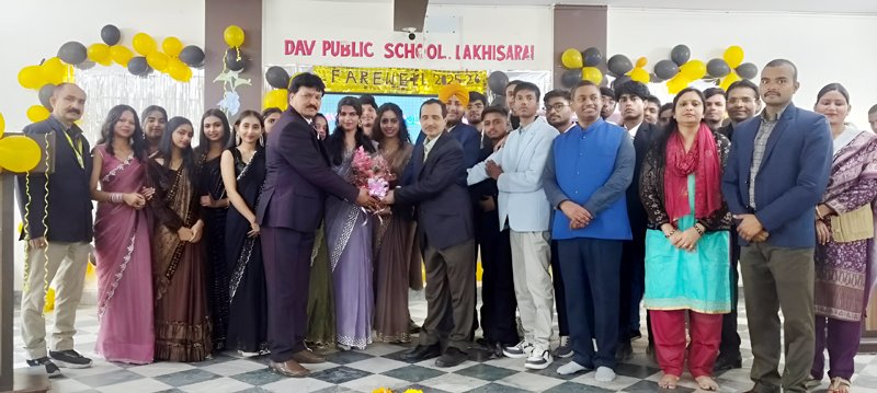 लखीसराय: स्थानीय डीएवी पब्लिक स्कूल, लखीसराय में बारहवीं कक्षा के छात्र-छात्राओं के सम्मान में भव्य विदाई समारोह का आयोजन किया गया। कार्यक्रम का आयोजन उत्साह और भावनात्मक माहौल के बीच किया गया, जिसमें विद्यालय परिवार, शिक्षकगण एवं विद्यार्थियों ने बढ़-चढ़कर भाग लिया।