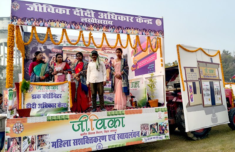 लखीसराय: 77वें गणतंत्र दिवस के अवसर पर लखीसराय जिला मुख्यालय स्थित गांधी मैदान में आयोजित मुख्य समारोह के दौरान जीविका द्वारा प्रस्तुत की गई झांकी सभी के आकर्षण का केंद्र रही। सामाजिक विकास विधा के अंतर्गत दीदी अधिकार केंद्र पर आधारित यह झांकी महिलाओं के अधिकार, लैंगिक हिंसा के विरुद्ध संघर्ष, समानता और सामाजिक कुरीतियों के उन्मूलन का सशक्त संदेश देती नजर आई।