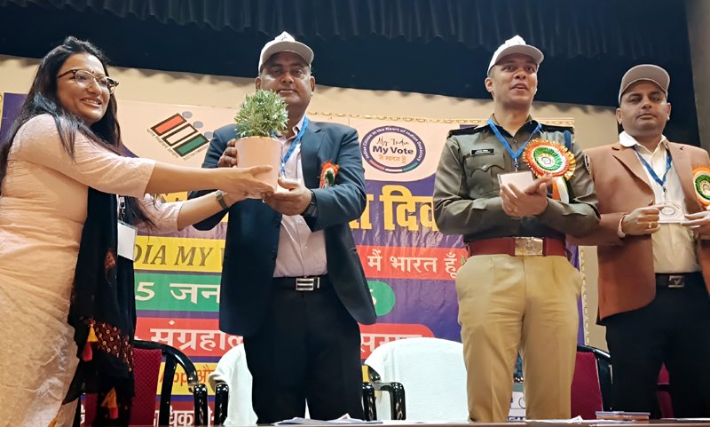 इस अवसर पर मतदाता जागरूकता अभियान को प्रभावी रूप से संचालित करने वाले जिले के स्वीप आइकॉन को नव पौध भेंट कर सम्मानित किया गया।