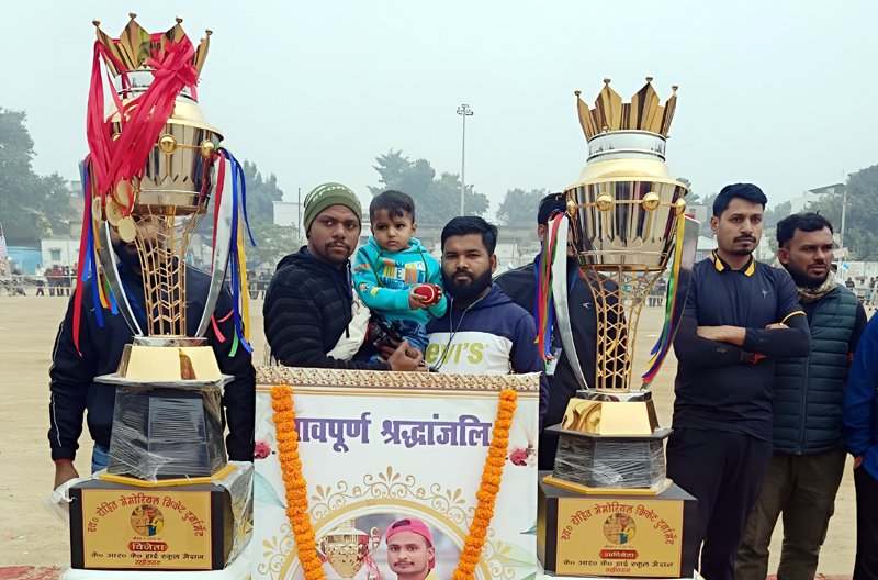 लखीसराय में शनिवार को स्व. रोहित मेमोरियल 19 दिवसीय क्रिकेट टूर्नामेंट का भव्य उद्घाटन हुआ। केआरके हाई स्कूल मैदान पर आयोजित इस टूर्नामेंट का शुभारंभ नगर परिषद के सभापति अरविंद पासवान, स्काई विजन पब्लिक स्कूल की सचिव सबिता शर्मा, डायरेक्टर बबलू शर्मा और स्व. क्रिकेटर रोहित की पत्नी वर्षा कुमारी ने संयुक्त रूप से फीताकाट कर किया। उद्घाटन समारोह में नप के उप सभापति शिवशंकर राम, नोनगढ़ पंचायत की मुखिया जुली देवी और संग्रामपुर पंचायत के दीपक सिंह विशेष अतिथि के रूप में उपस्थित रहे।