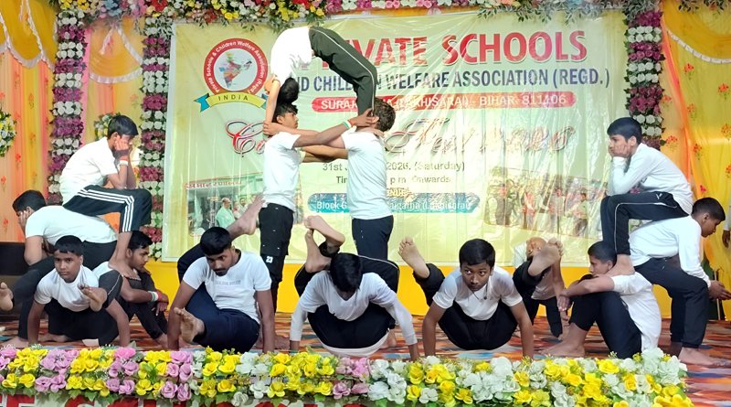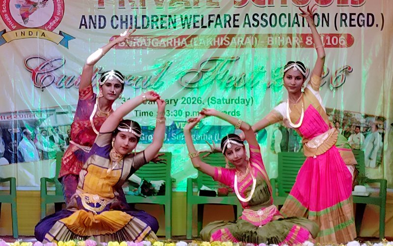 लखीसराय: सूर्यगढ़ा प्रखंड मुख्यालय परिसर में प्राइवेट स्कूल एंड चिल्ड्रेन वेलफेयर एसोसिएशन की सूर्यगढ़ा इकाई द्वारा आयोजित भव्य सांस्कृतिक कार्यक्रम में देशभक्ति, कला और संस्कार का अद्भुत संगम देखने को मिला। कार्यक्रम में लाल इंटरनेशनल स्कूल, लखीसराय के छात्र-छात्राओं ने राष्ट्रभक्ति से ओत-प्रोत नृत्य-गीतों की प्रस्तुति देकर दर्शकों का दिल जीत लिया।