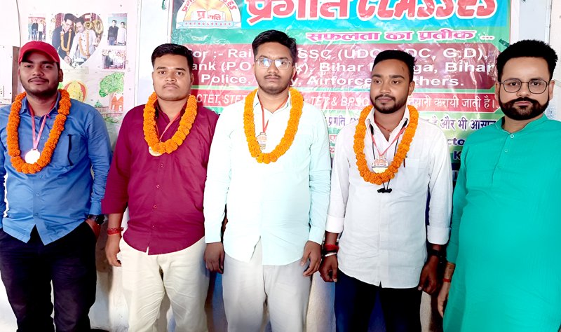 लखीसराय: लखीसराय शहर के चितरंजन स्थित केएसएस कॉलेज निकट संचालित प्रगति क्लासेस में रविवार को सम्मान समारोह का आयोजन किया गया, जहां केंद्रीय शिक्षक पात्रता परीक्षा (CTET) 2026 में सफल 27 छात्र-छात्राओं को सम्मानित किया गया।