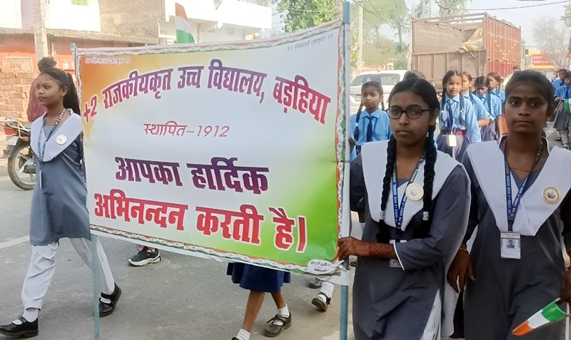 लखीसराय: शहीद दिवस के अवसर पर ‘मेरा युवा भारत लखीसराय’ के तत्वावधान में जिले के बड़हिया प्रखंड बाजार में एक भव्य पदयात्रा का आयोजन किया गया। इस पदयात्रा में सरकारी एवं निजी विद्यालयों के लगभग 500 छात्र-छात्राओं के साथ सैकड़ों शिक्षकों ने उत्साहपूर्वक भाग लिया।