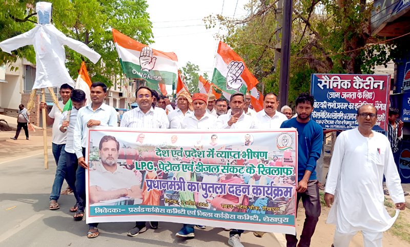 शेखपुरा में गैस, पेट्रोल और डीजल की लगातार बढ़ती कीमतों के विरोध में कांग्रेस कार्यकर्ताओं ने जोरदार प्रदर्शन किया। जिला अध्यक्ष आनंदी यादव के नेतृत्व में पार्टी कार्यकर्ताओं ने पार्टी कार्यालय से पटेल चौक तक पैदल मार्च निकाला और केंद्र सरकार के खिलाफ जमकर नारेबाजी की। प्रदर्शन के दौरान कार्यकर्ताओं ने प्रधानमंत्री नरेंद्र मोदी का पुतला दहन कर अपना विरोध जताया।