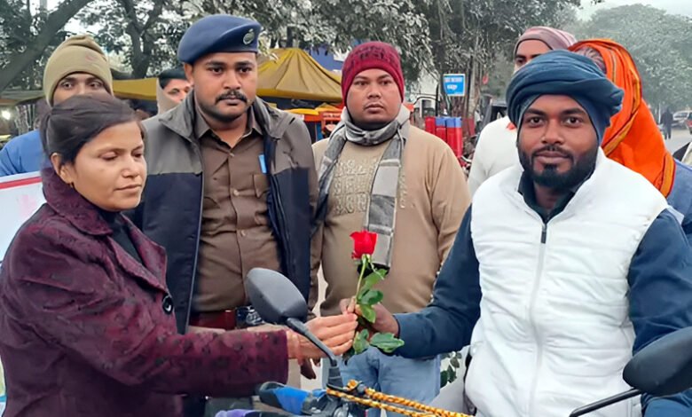 Bihar News : शेखपुरा में सड़क सुरक्षा का संदेश देने का अनोखा तरीका, बिना हेलमेट चालकों को DTO ने दिए गुलाब!