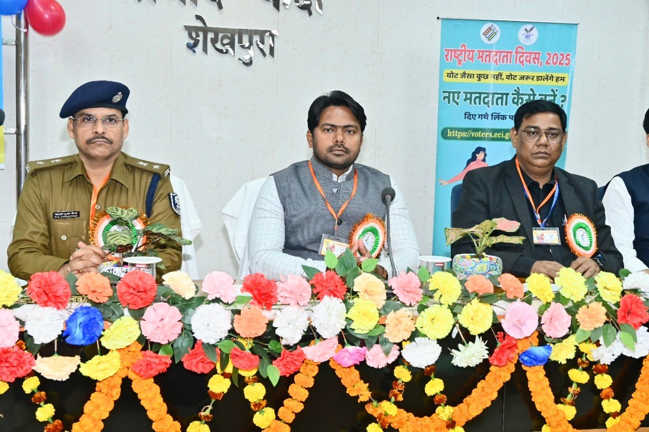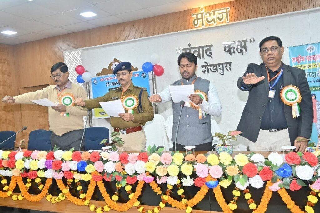 इस अवसर पर जिला निर्वाचन पदाधिकारी-सह-जिला पदाधिकारी, शेखपुरा द्वारा समारोह में उपस्थित सभी पदाधिकारियों/कर्मियों/राजनैतिक दलों के प्रतिनिधियों एवं सभी को मतदाता शपथ दिलाया गया।