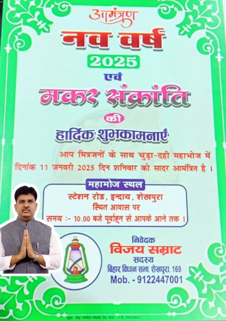 शेखपुरा के राजद विधायक विजय सम्राट के द्वारा मकर संक्रांति के अवसर पर 11 जनवरी (शनिवार) को महाभोज का आयोजन किया जा रहा है।