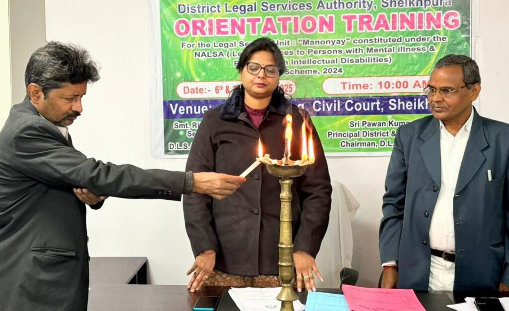सोमवार को प्रधान जिला जज सह जिला विधिक सेवा प्राधिकार के अध्यक्ष पवन कुमार पांडेय के दिशा निर्देश पर नवनियुक्त पैनल अधिवक्ता एवं पारा विधिक स्वयं सेवक का दो दिवसीय प्रशिक्षण कार्यक्रम की शुरुआत की गई। जिसका शुभारंभ जिला विधिक सेवा प्राधिकार के सचिव रीतू कुमारी एवं डिफेंस काउंसिल सिस्टम के चीफ बीरेंद्र कुमार के द्वारा संयुक्त रूप से दीप प्रज्वलित कर किया गया।
