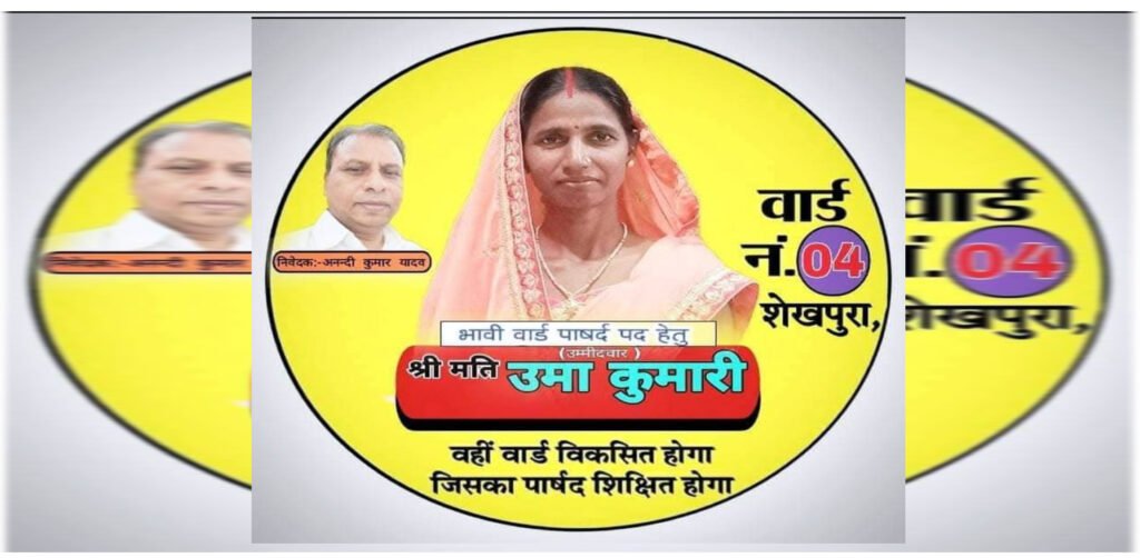 शेखपुरा नगर परिषद अंतर्गत वार्ड संख्या 4 की पार्षद उमा कुमारी उर्फ उमा देवी की सदस्यता चुनाव ने रदद् कर दिया है। उमा देवी अपने बेटी का नाम छिपकर झूठे हलफनामा दायर कर चुनाव जीती थी। चुनाव आयोग के निर्देशानुसार जिस व्यक्ति को दो से अधिक संतान है, वह कोई भी चुनाव लड़ नही सकता है। इसके बावजूद उमा कुमारी 3 बच्चों की माँ होते हुए एक बच्चे को छिपाकर मात्र दो संतान होने का ही हलफनामा दायर कर शेखपुरा नगर परिषद की चुनाव जीती थी।