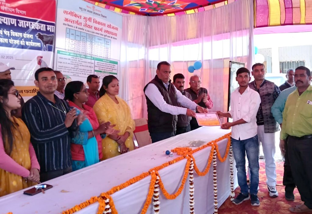 गुरुवार को जिला पशुपालन पदाधिकारी कार्यालय परिसर में पशु एवं मत्स्य संसाधन विभाग के बैनर तले पशुपालन एवं पशु कल्याण जागरूकता माह का आयोजन किया गया। कार्यक्रम का शुभारंभ जिला पार्षद अध्यक्ष निर्मला देवी एवं जिला पशुपालन पदाधिकारी राजीव रंजन सिंहा ने दीप प्रज्वलित कर किया। जिला पशुपालन अधिकारी ने समेकित मुर्गी विकास योजना अंतर्गत लेयर फार्म प्रबंधन एवं बॉयलर फॉर्म स्थापना सहित समेकित बकरी फार्म स्थापना किस प्रकार की जाती है उसकी विस्तृत जानकारियां प्रदान की।
