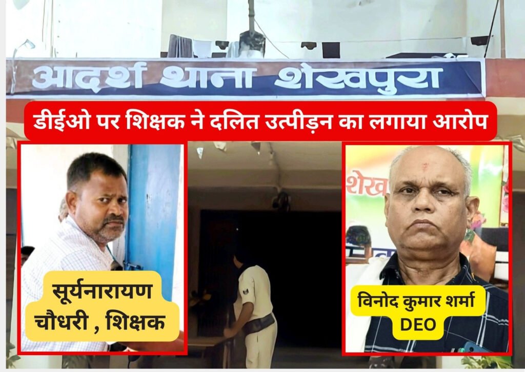 शेखपुरा के जिला शिक्षा पदाधिकारी विनोद कुमार शर्मा पर दलित उत्पीड़न का मामला दर्ज हुआ है। यह केस सदर प्रखंड के मंदना प्राथमिक विद्यालय के प्रभारी प्रधानाध्यापक सूर्य नारायण चौधरी ने दर्ज कराया है। चौधरी बिहटा गांव के रहने वाले हैं।