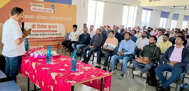 हाजीपुर, वैशाली: बासुदेवपुर चपुता स्थित विज़न इंडिया एम्प्लॉयमेंट एकेडमी में शुक्रवार को एक अनूठा रोज़गार संवाद आयोजित किया गया। इस संवाद में विधायक अवधेश सिंह सीधे युवाओं से जुड़े और उनके सवालों, आकांक्षाओं और करियर चुनौतियों पर खुलकर चर्चा की।