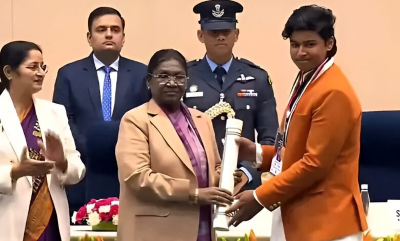 पटना | क्रिकेट जगत में कम उम्र में बड़ी पहचान बनाने वाले बिहार के होनहार खिलाड़ी वैभव सूर्यवंशी को राष्ट्रपति द्रौपदी मुर्मू ने प्रधानमंत्री राष्ट्रीय बाल पुरस्कार से सम्मानित किया। राष्ट्रपति भवन में आयोजित समारोह में वैभव समेत देशभर के 20 प्रतिभाशाली बच्चों को यह सम्मान दिया गया। इस दौरान वैभव ने प्रधानमंत्री नरेंद्र मोदी से भी मुलाकात की।